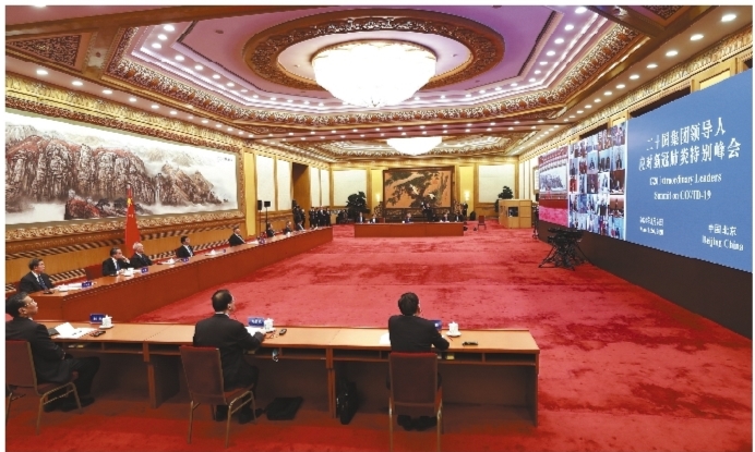 3月26日,國(guó)家主席習(xí)近平在北京出席二十國(guó)集團(tuán)領(lǐng)導(dǎo)人應(yīng)對(duì)新冠肺炎特別峰會(huì)并發(fā)表題為《攜手抗疫 共克時(shí)艱》的重要講話。