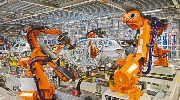 新春伊始,走進(jìn)沈陽華晨寶馬鐵西工廠的主辦公樓,迎面看見的就是一條懸空的流動生產(chǎn)線,車型顏色各異的新車一輛接一輛,準(zhǔn)備進(jìn)入總裝車間完成車輛裝配。車間內(nèi),巨大的橘色機(jī)械臂扭動著身軀,精準(zhǔn)配合完成零部件的抓取、焊接等工作。據(jù)了解,2021年,寶馬汽車在我國的銷量仍同比增長8.9%,已連續(xù)第二年創(chuàng)新高。圖為在華晨寶馬沈陽鐵西工廠車身車間,機(jī)械臂在焊接車身。
